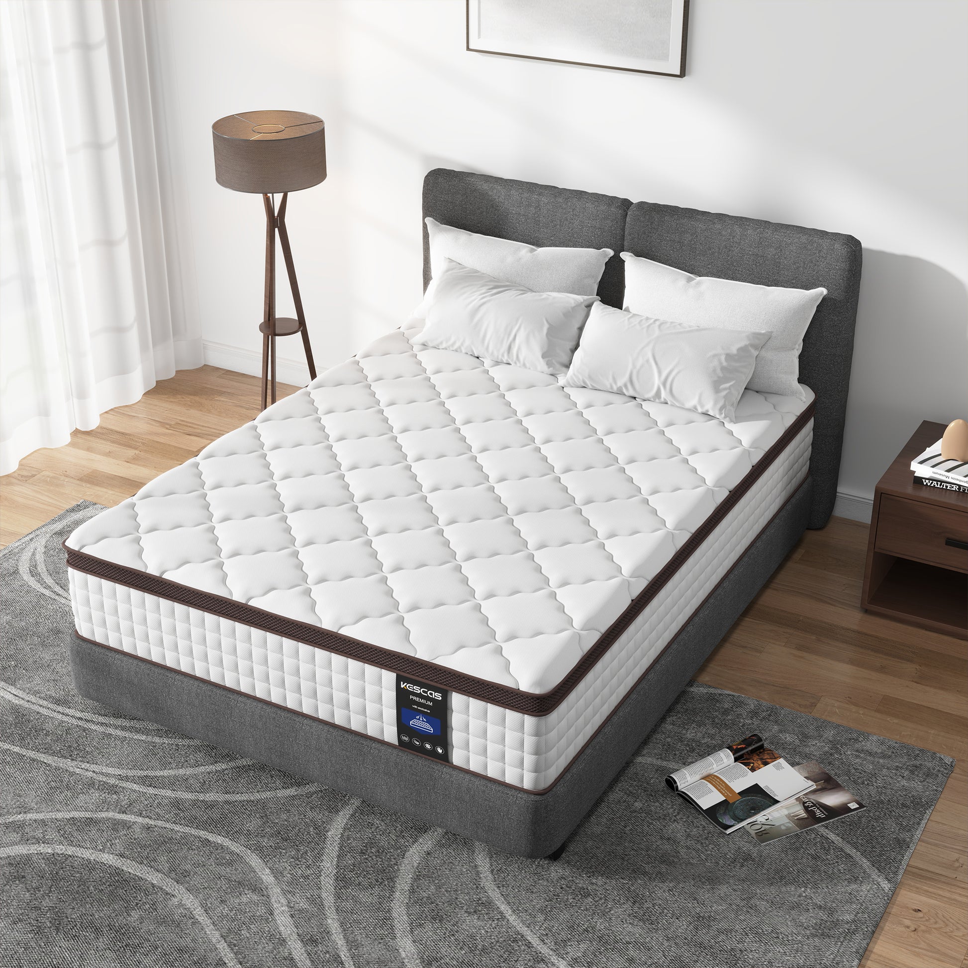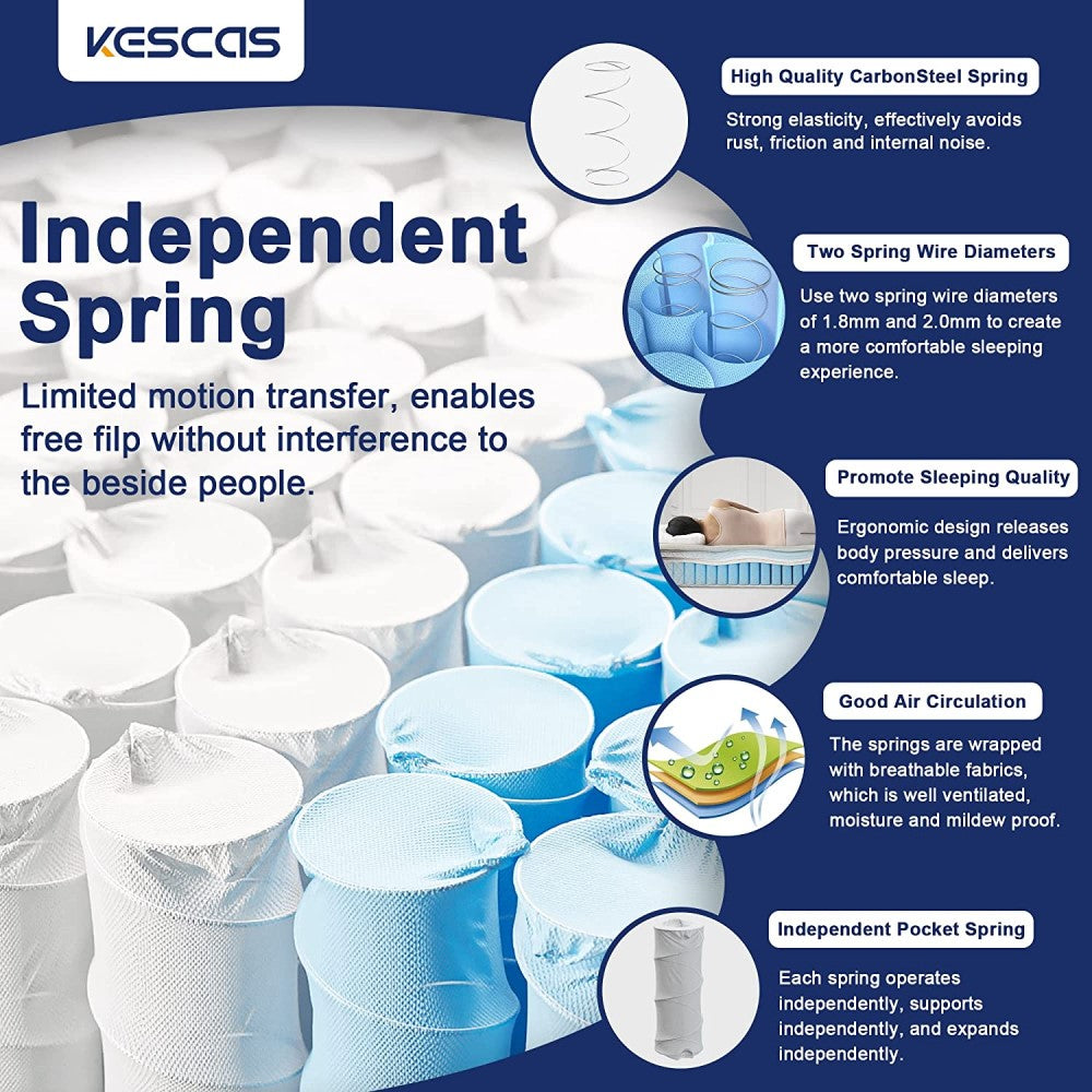Kescas 4FT6 Double Mattress, 10 Inch Pocket Spring Hybrid Mattress with Breathable Foam (ONLY For UK)